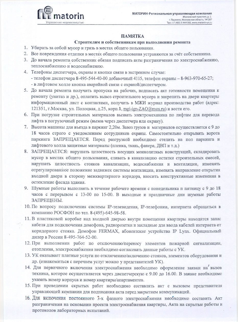 Памятка строителям